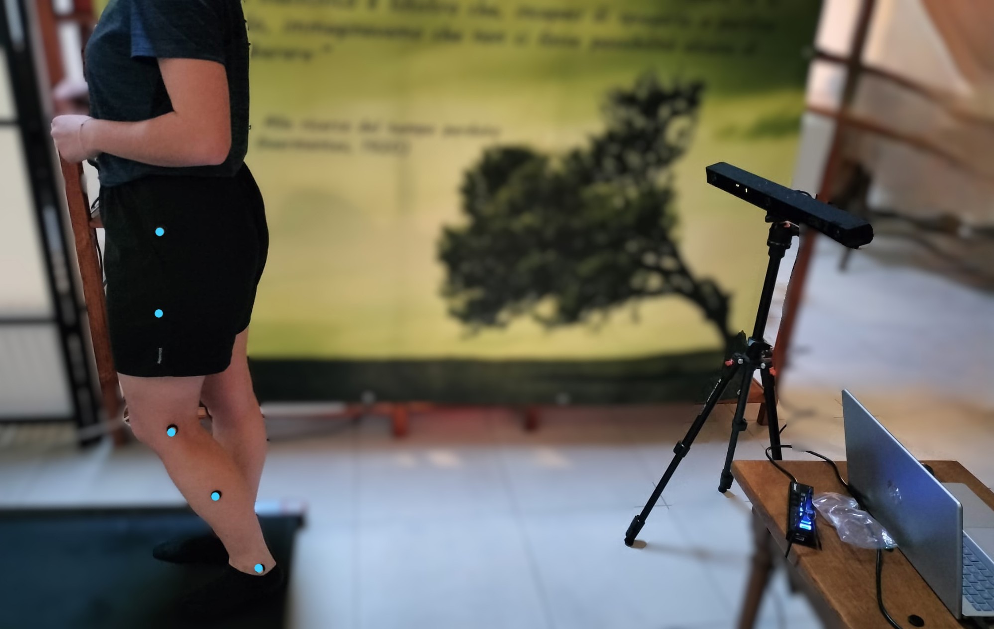 - Applicazione Marker: Vengono posizionati piccoli sensori riflettenti su punti anatomici specifici.